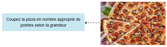 … ou des lignes pointillées pour rejoindre des images ou astuces aux étapes du processus auquelles elles se rapportent :